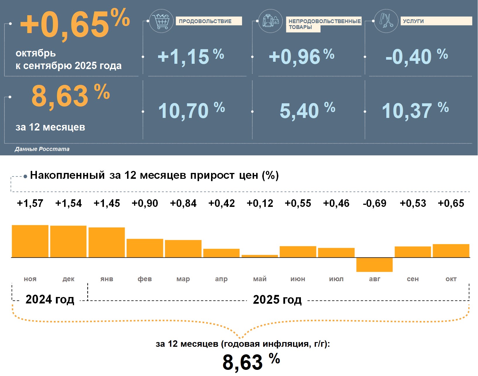Цены в Удмуртской Республике в октябре 2025 года, по данным Росстата, повысились на 0,65% к сентябрю. Годовая инфляция в регионе замедлилась с 9,01% в сентябре до 8,63% в октябре. Это выше, чем в стране в целом (7,71%). В октябре в Удмуртии с исключением сезонности (с.к.)* текущий рост цен замедлился. В основном сказалось снижение цен на зарубежные туры благодаря…